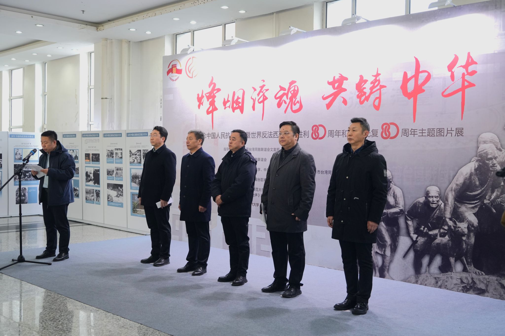 12月1日上午,由全国台联策划,辽宁省台联主办,我校与阜新市委统战部、市台联共同承办的“烽烟淬魂 共铸中华”——纪念中国人民抗日战争暨世界反法西斯战争胜利80周年和台湾光复80周年主题图片展在我校玉龙校园博文楼启幕。全国台联副会长、辽宁省台联会长周琪,辽宁省台联党组成员、台胞联络部部长张建军;阜新市委统战部副部长、市台办主任苏建中;我校党委书记岑松、党委副书记于海臣等出席了开幕式。开幕式由校党委常委、统战部部长汪玉柱主持。